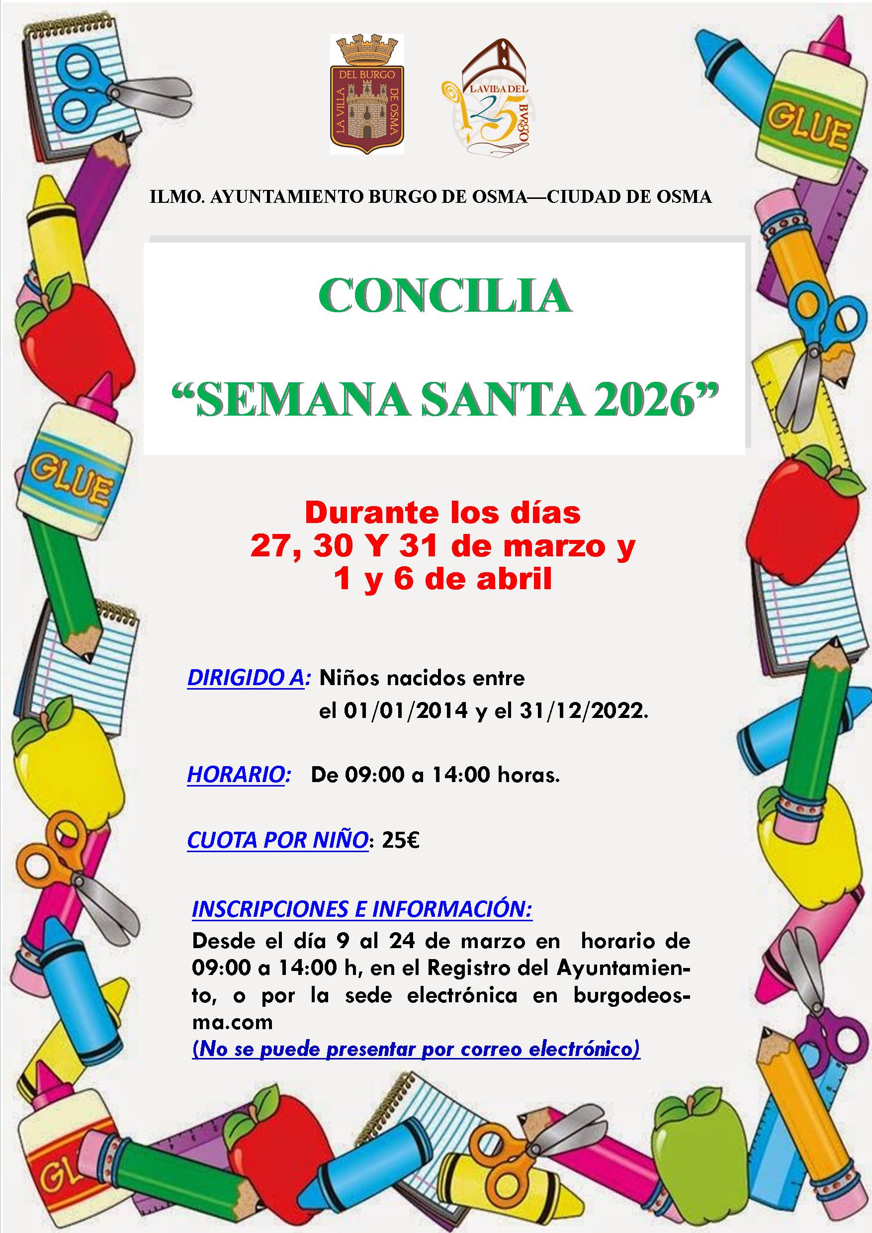 El servicio de “Concilia Semana Santa 2026” tiene un coste de 25€/niño.